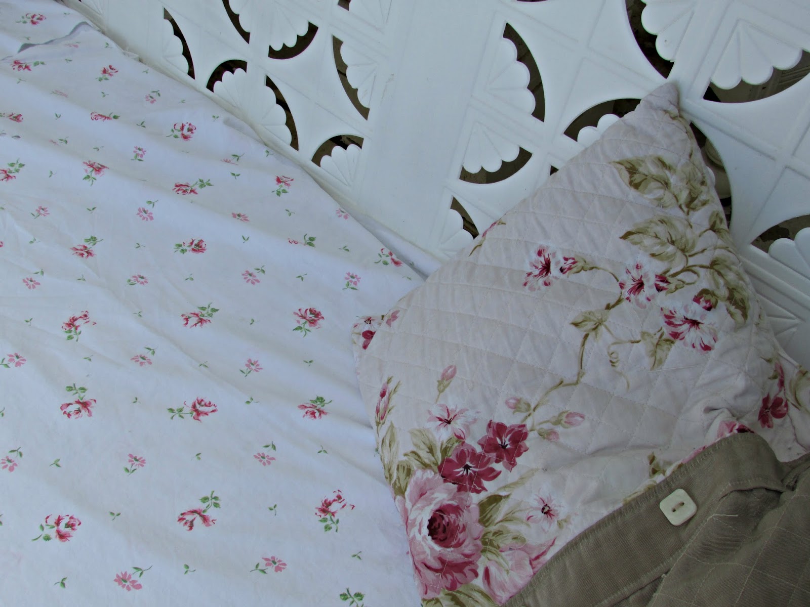 | I went out and cut the last of the roses for a few weeks and made a pretty bouquet for the coffee table in front of the wicker settee's.. |
