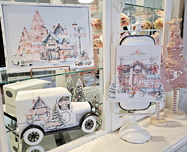 I've added quite a few new vignettes to my lit Christmas cabinet.    Check out the way it looked when I  last posted.....